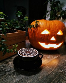 Но у нас есть отличный способ защиты — страшно вкусный большой капучино с сиропом Пряная тыква или ужасно красивый паспучо с карамельной паутиной!